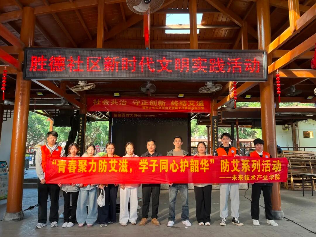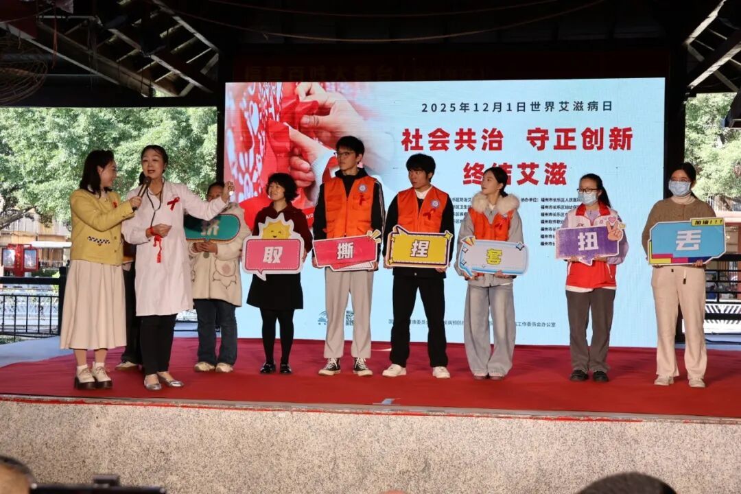 为进一步推动艾滋病防治工作,广泛普及艾滋病防治知识。2025年12月1日,我院联合福州市长乐区防治艾滋病工作委员会在长乐区河滨公园开展“社会共治,守正创新,终结艾滋”主题宣传活动。我院学子以青春之名践行社会责任,将科学防艾的种子播撒在每个人心间,为构建健康社会、共筑防艾屏障书写了生动注脚。
