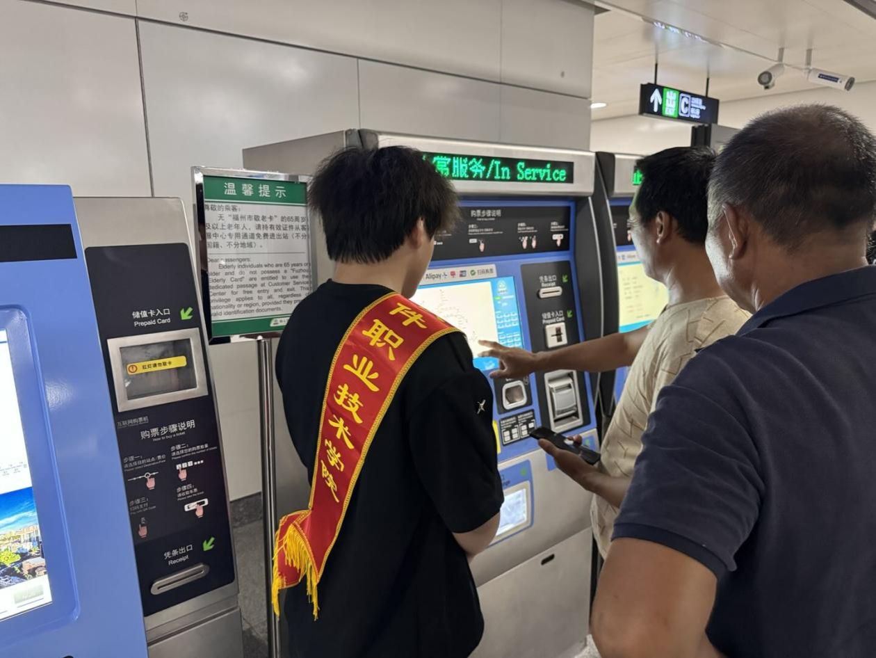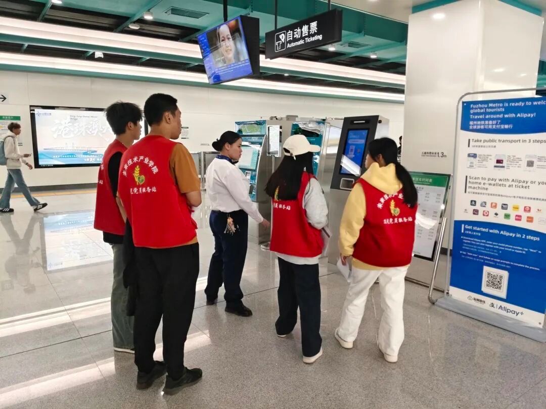 以耐心为桥,畅通民生脉络。11月28日、12月5日,学院先后组织16名志愿者奔赴福州地铁万寿站,开展“青春力量,护航出行”志愿服务。面对每日超5000人次的客流,志愿者们在购票机旁、闸机口前、扶梯两侧各司其职,为乘客提供购票指导、路线咨询、换乘引导等贴心服务。