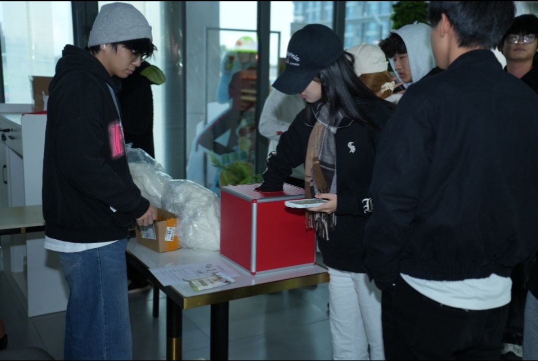 在答题抽奖区,学子们通过签到处登记后扫码参与冬至习俗知识问答,完成答题即可兑换抽奖券,角逐大号饺子抱枕、蒸汽眼罩等特色奖品,参与奖饺子贴纸更是让大家收获满满。