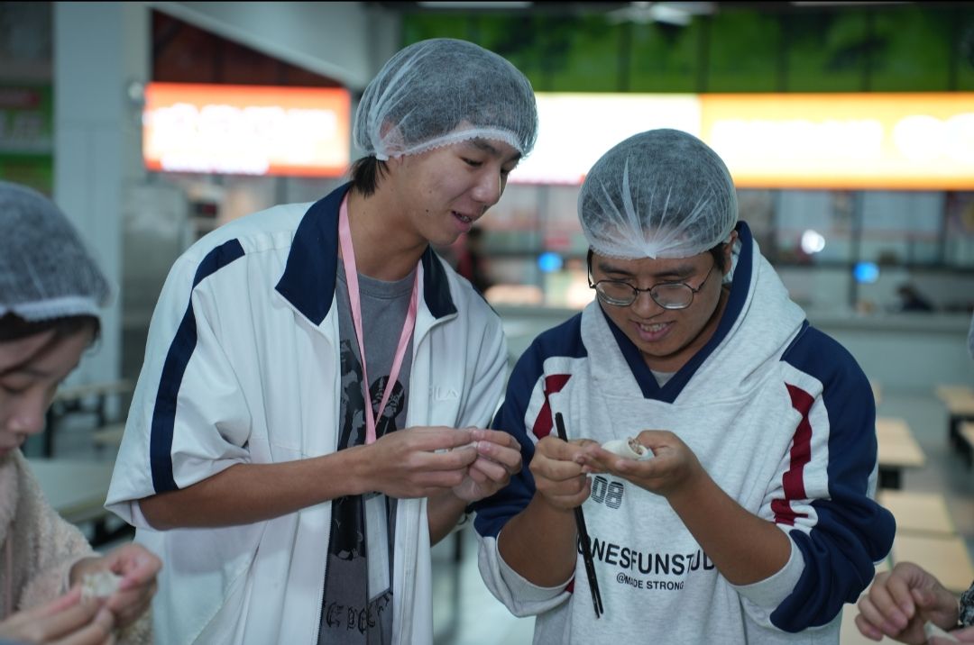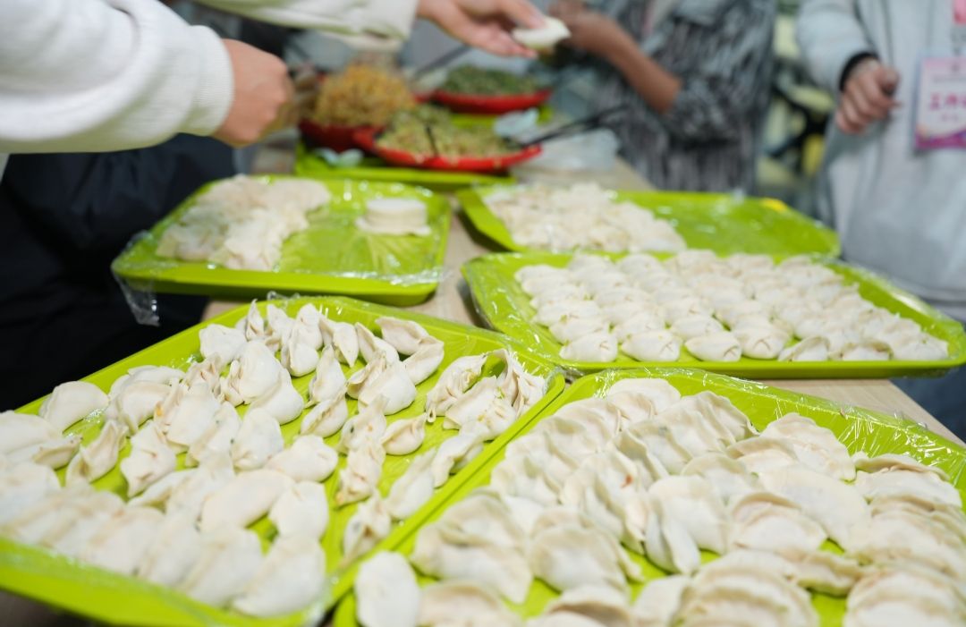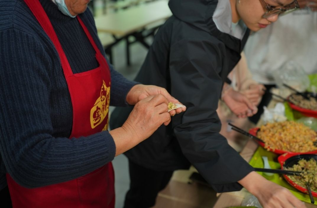 手作美食环节备受青睐,同学们自主选择加入汤圆组或饺子组,在专业师傅的现场演示与指导下,有条不紊地开展揉面团、包馅料、搓汤圆等操作。过程中,大家相互交流技巧、分享乐趣,在实践中解锁冬至美食制作技能,现场氛围温馨融洽。制作的饺子进行现场分发。