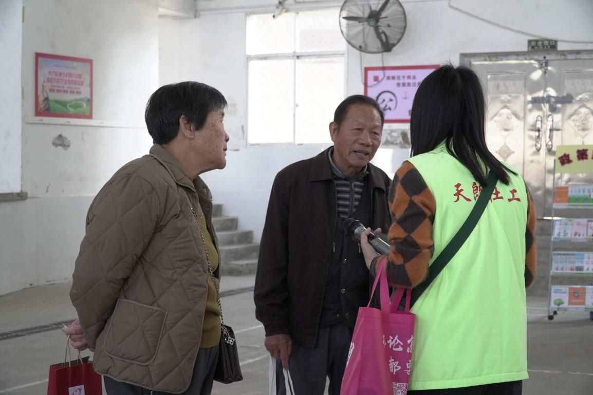 9点,活动正式拉开帷幕。签到处前人头攒动,学院志愿者们化身引导员,耐心引导村民签到、领取体验卡,并用通俗易懂的语言介绍摊位分布与集章规则。针对老年村民多、方言沟通不便的情况,志愿者们主动学习简单方言,配合巾帼志愿者提供协助,确保每位参与者都能清晰了解活动详情。
