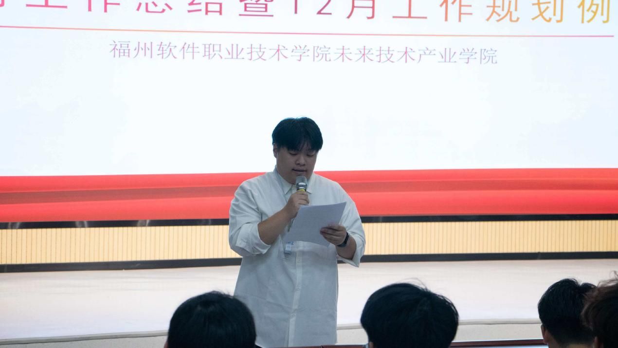 为进一步推动学院团学工作高效开展,明确阶段工作方向,福州软件职业技术学院未来技术产业学院团委、学生会于2025年12月9日晚,召开11月工作总结暨12月工作规划会议。会议由许玉菁老师主持,全体团委、学生会部门干事参会。