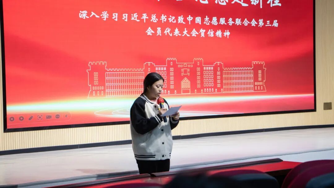 作为青年学生骨干,我将把贺信精神化为行动,以更饱满的热忱投身志愿服务,在服务他人中提升素养,在奉献社会中实现价值,让青春在传递正能量中绽放光彩。