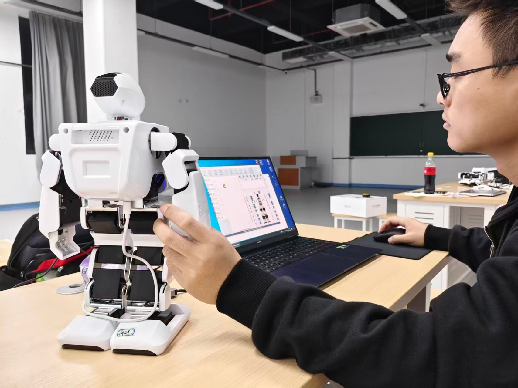 本次赛事聚焦人形机器人技术应用,重点考察机器人编程控制与场景任务执行等核心能力,是金砖国家范围内培育未来智能产业人才的重要平台之一。为备战比赛,未来技术产业学院与智能产业学院的指导老师们提前筹划,带领学生利用课余时间展开集中训练。从机器人动作逻辑的精细编程到竞赛场景的模拟推演,师生团队共同钻研技术难点、持续优化方案,为赛场上的稳定发挥奠定了坚实基础。
