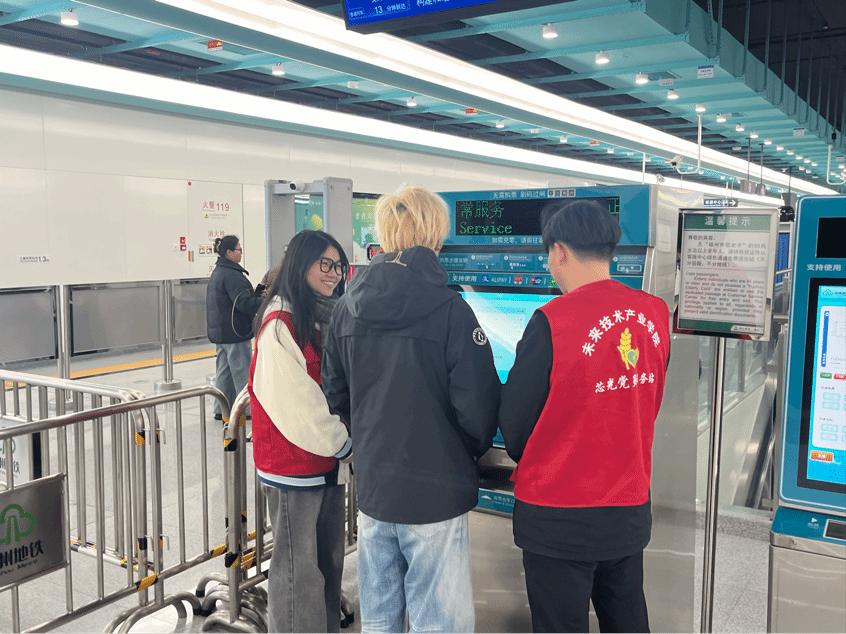 为深入践行党的二十大精神,落实以人民为中心的发展思想,进一步弘扬志愿服务精神、锤炼青年品格、筑牢服务根基,未来技术产业学院学生第一、第二党支部累计开展了20次“地铁志愿红,指引暖出行”主题地铁站志愿服务活动。该活动一经发布取得了广大师生的好评,参与活动的入党积极分子占总人数的90%。本系列活动旨在充分发挥党组织战斗堡垒作用与党员先锋模范作用,将暖心关怀切实转化为城市运行的坚实助力;以标准化、专业化服务为重要抓手,大力弘扬“奉献、友爱、互助、进步”的志愿服务精神。
