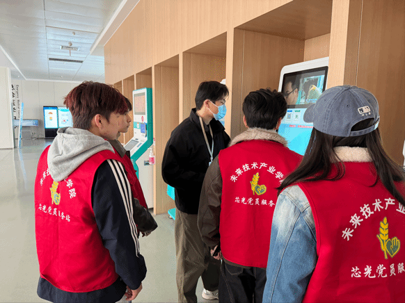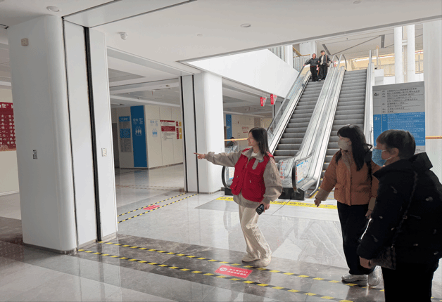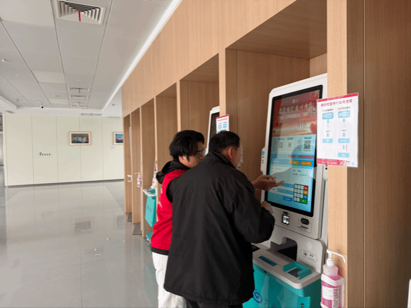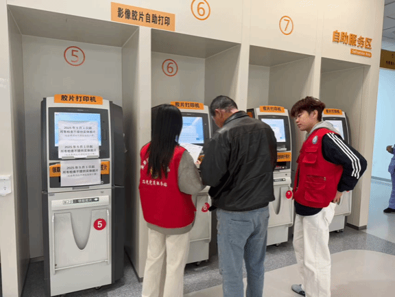 活动初始,入党积极分子积极向医院负责人进行全面系统的岗前学习。大家认真听着负责人介绍着院区布局图,细致拆解医院的整体规划、各功能分区及科室具体位置。随后,在医院门诊大厅与自助服务区里,处处都能看到志愿者们忙碌的身影。大家统一着装、分工明确、默契配合,耐心引导患者有序就诊,细心协助大家完成挂号、缴费、检验报告打印等操作,认真解答每一个疑问。