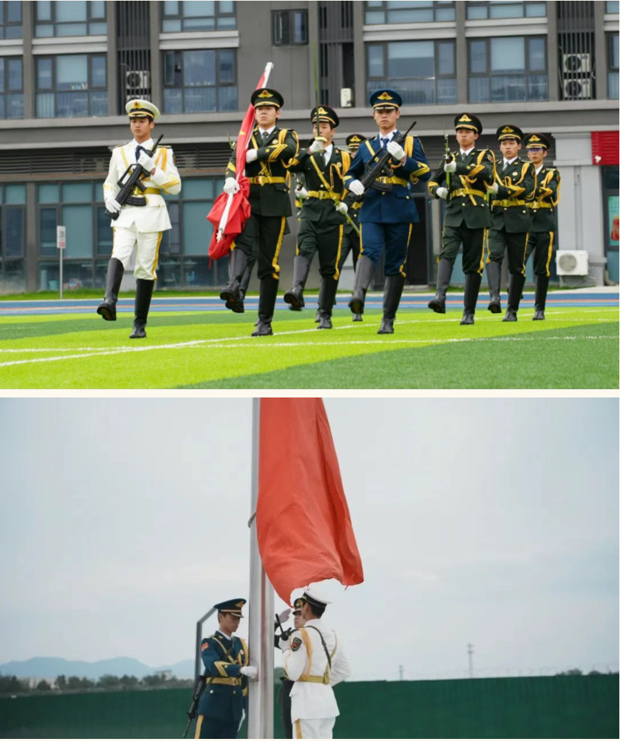 随着主持人宣布升旗仪式开始,国旗护卫队迈着整齐有力的步伐,护送五星红旗入场。激昂的《义勇军进行曲》响起,全体师生庄严肃立,高唱国歌,鲜艳的五星红旗冉冉升起,飘扬在校园上空,爱国之情在每个人心中激荡。
