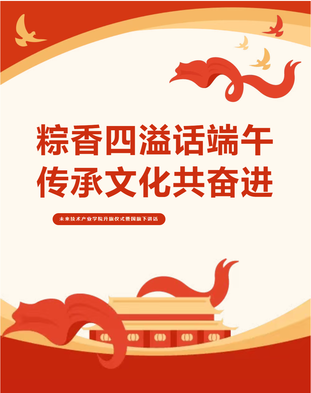 为弘扬中华优秀传统文化,厚植师生家国情怀,在端午佳节来临之际,未来技术产业学院于2025年5月26日清晨隆重举行升旗仪式暨国旗下的讲话。智能机器人技术专业、智能光电技术应用专业全体师生、征兵工作站全体成员、相关政工人员齐聚操场参与此次仪式。