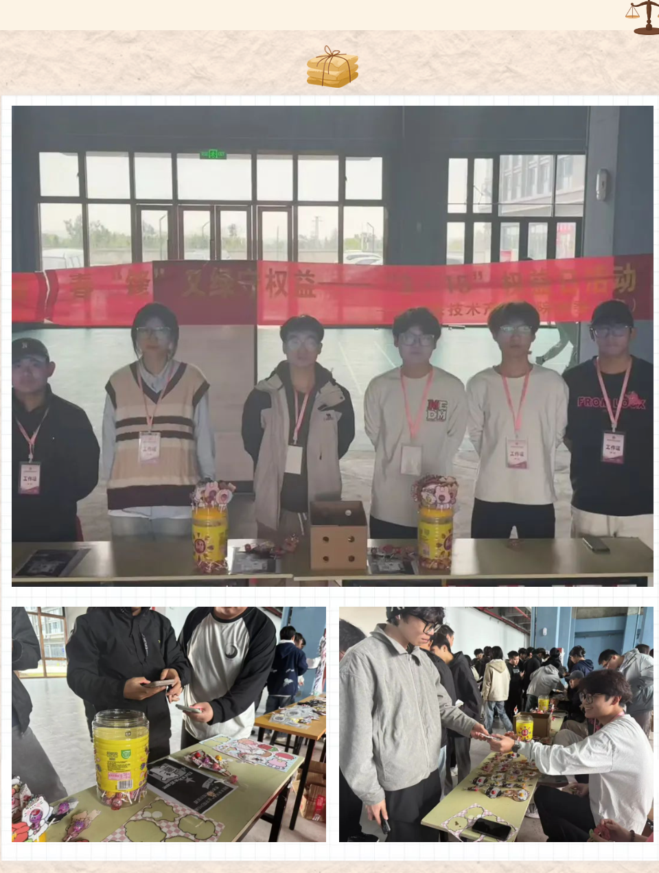 在权益知识问答活动中,题型涵盖了消费、维权、权益等多个领域,通过同学们题目的分值,为积极参与的同学们送上了精美小礼物,在同学们面对一道道消费权益相关的题目,时而眉头紧皱思考,时而讨论交流。大家在激烈的答题中,成功提升了自身的权益保护意识,也收获了丰富的知识。