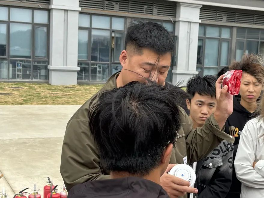 在消防教员的专业讲解与示范操作后,参训学生热情高涨,纷纷上场进行实操演练。实操过程中,教员不断强调灭火器使用的四字口诀:“摇、拔、对、压”,并指导学生站在上风方向,将喷嘴精准对准火焰根部进行喷射。学生严格按照教员指导,分批依次进行操作,均出色地完成了灭火任务。通过此次实操演练,学生们不仅加深了对消防器材使用的理解,更提升了应对火灾的实战能力。