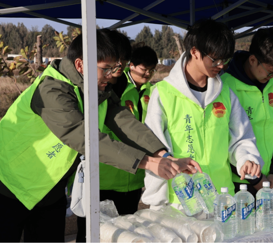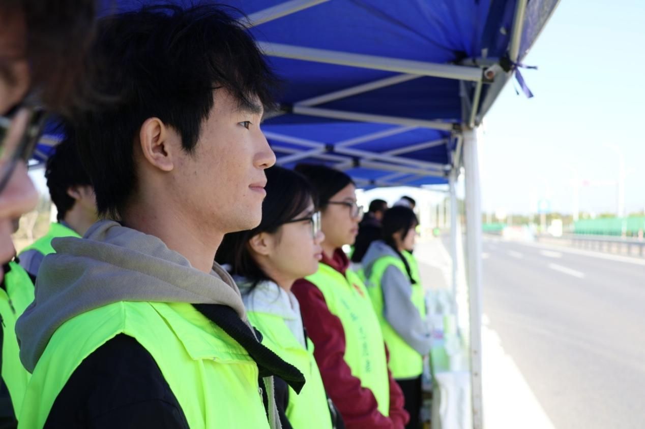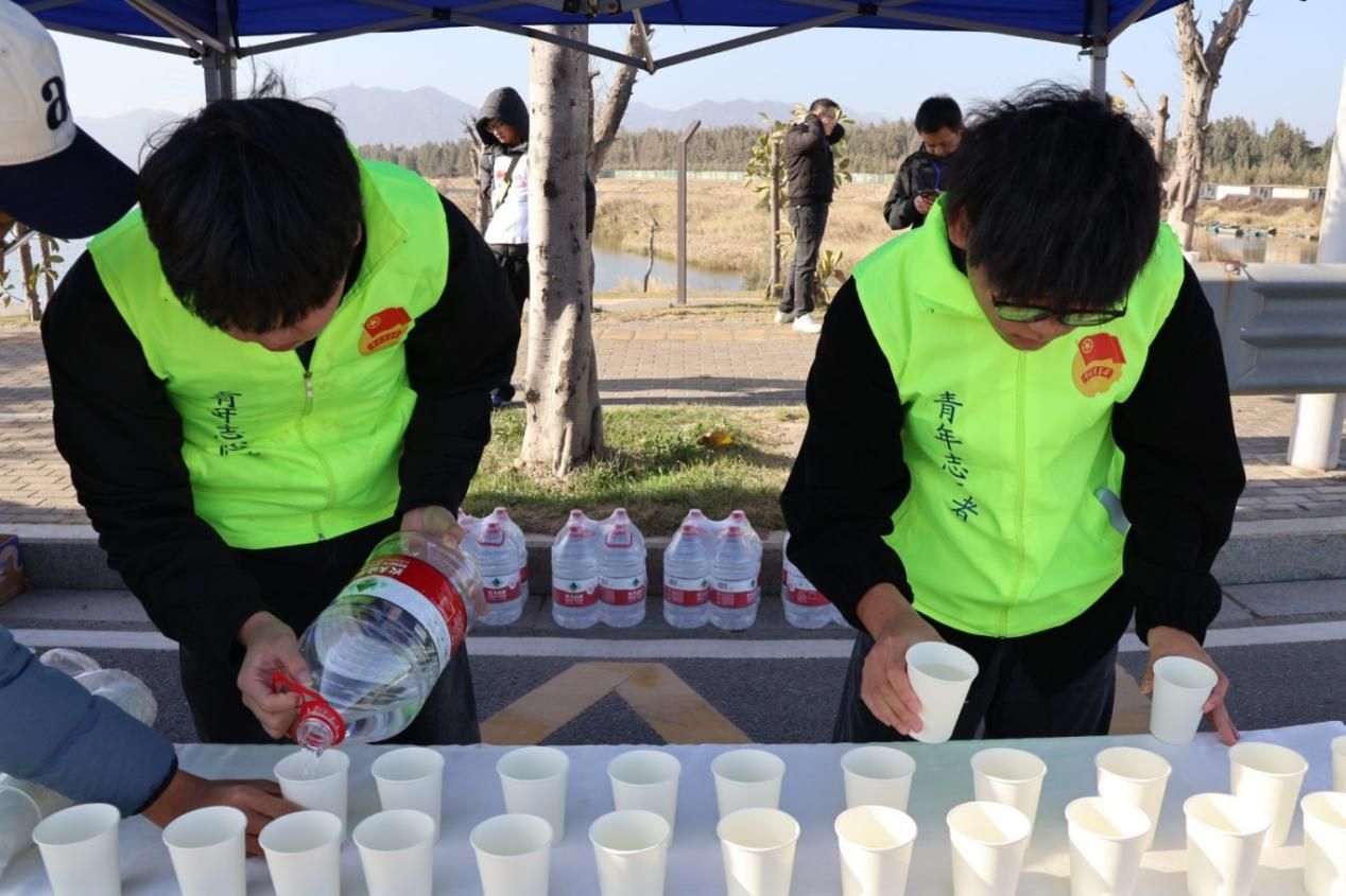 活动前期,学院针对补给服务、折返指引等核心任务开展专项培训,明确工作流程与安全规范,确保志愿者熟练掌握服务要点。11月29日清晨6:40,志愿者们准时集合出发,抵达现场后迅速投入工作,完成补给物资分类摆放、折返点位布置等筹备工作,为赛事顺利启动筑牢保障。