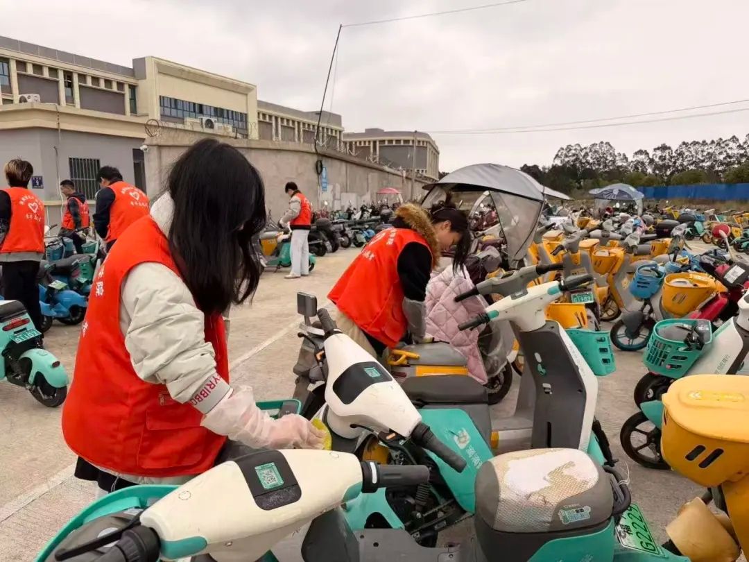 “锋”起而行,净美家园。我院组织志愿者开展共享单车清洁整治志愿服务,清洁车身污渍、规范乱停车辆,向市民倡导文明用车理念。活动既擦亮了校园周边颜值,更让学子躬身践行雷锋精神,以青春力量守护共同家园。