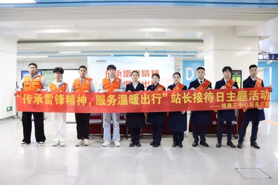 初心映“锋”光,服务暖归途。我院联合福州地铁,组织志愿者赴万寿站开展学雷锋志愿服务。志愿者坚守岗位,引导有序乘车、帮扶特殊群体,提供路线咨询、行李帮扶等贴心服务,以实际行动传承雷锋精神,彰显青年担当,温暖市民出行归途。