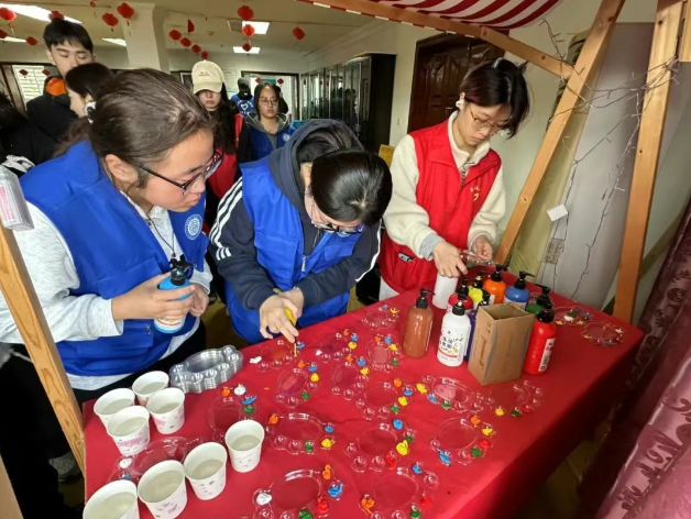 在志愿者的悉心协助下,老人们拿起颜料与画笔,开始在帆布包上自由挥洒心中的色彩。对于手部不便的老人,志愿者更是主动伸出援手,与他们携手共创艺术佳作,每一笔都蕴含着对老人的深切关怀与耐心陪伴。