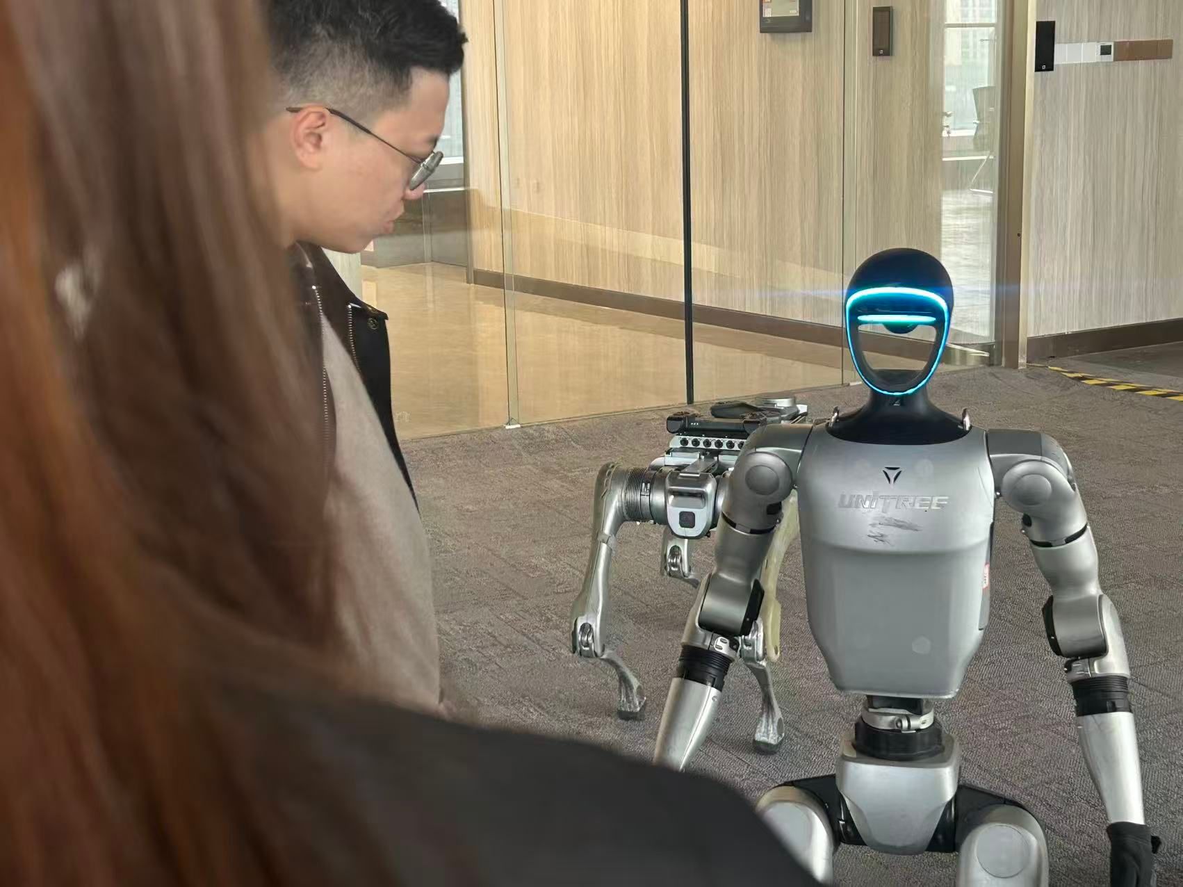调研第二站,团队走进宇树科技公司,近距离感受企业在具身机器人领域的创新实力与发展活力。双方围绕具身机器人产品研发、技术升级、人才需求等方面展开深入交流,企业方结合行业发展趋势,对学院智能机器人技术、具身机器人技术专业建设、人才培养方向提出了针对性建议,为后续校企协同育人、技术合作搭建了坚实的沟通桥梁。