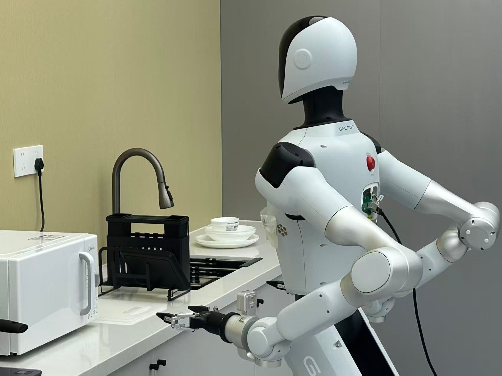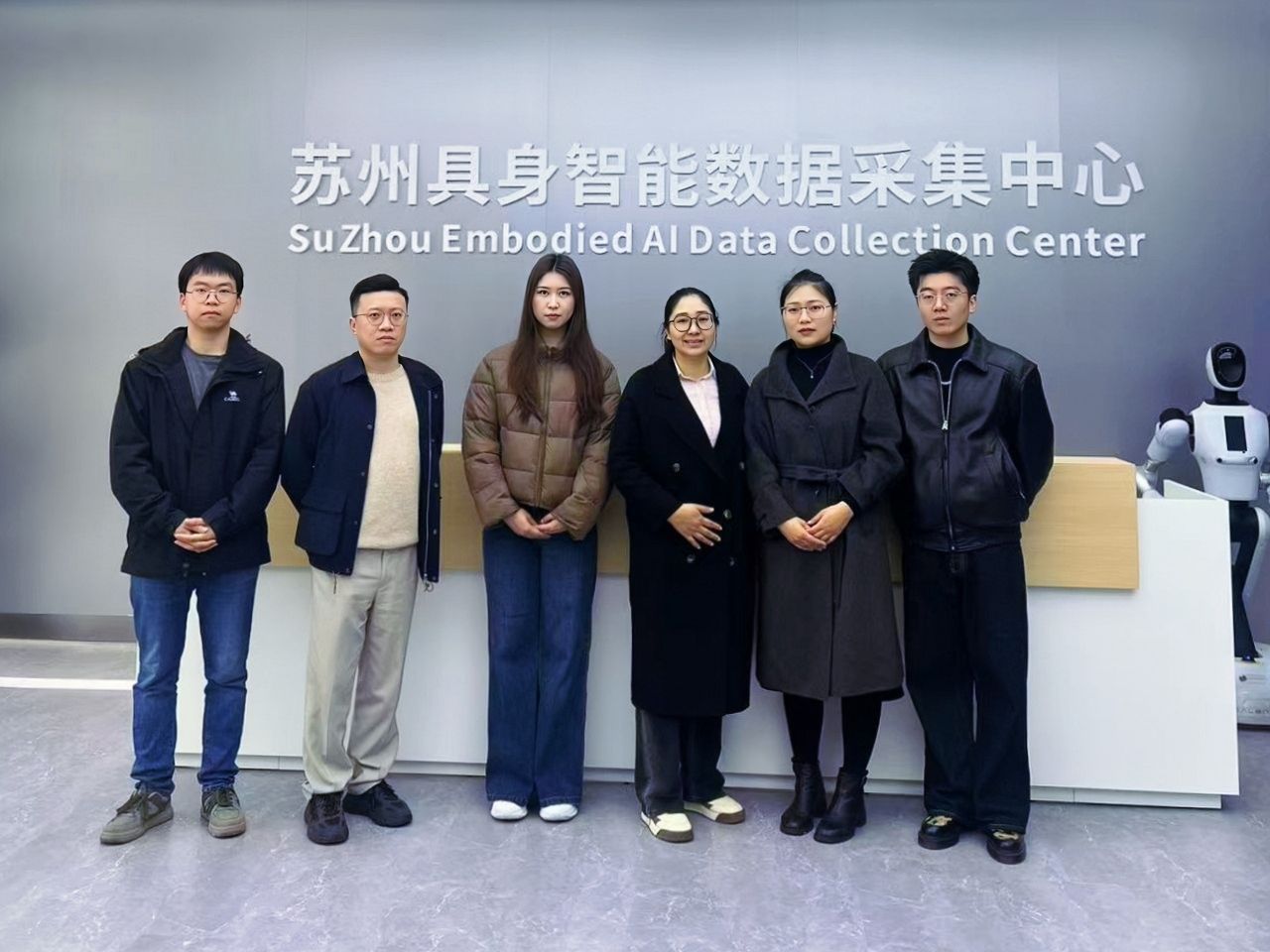 在苏州具身智能数据采集中心,调研团队在中心负责人陪同下,参观了银河机器人在家庭、零售商超、制造业、药店等多场景的应用成果。这些贴合实际需求的智能设备,充分展现了具身智能技术的应用价值与前景,也为两大专业实践教学提供了鲜活案例。