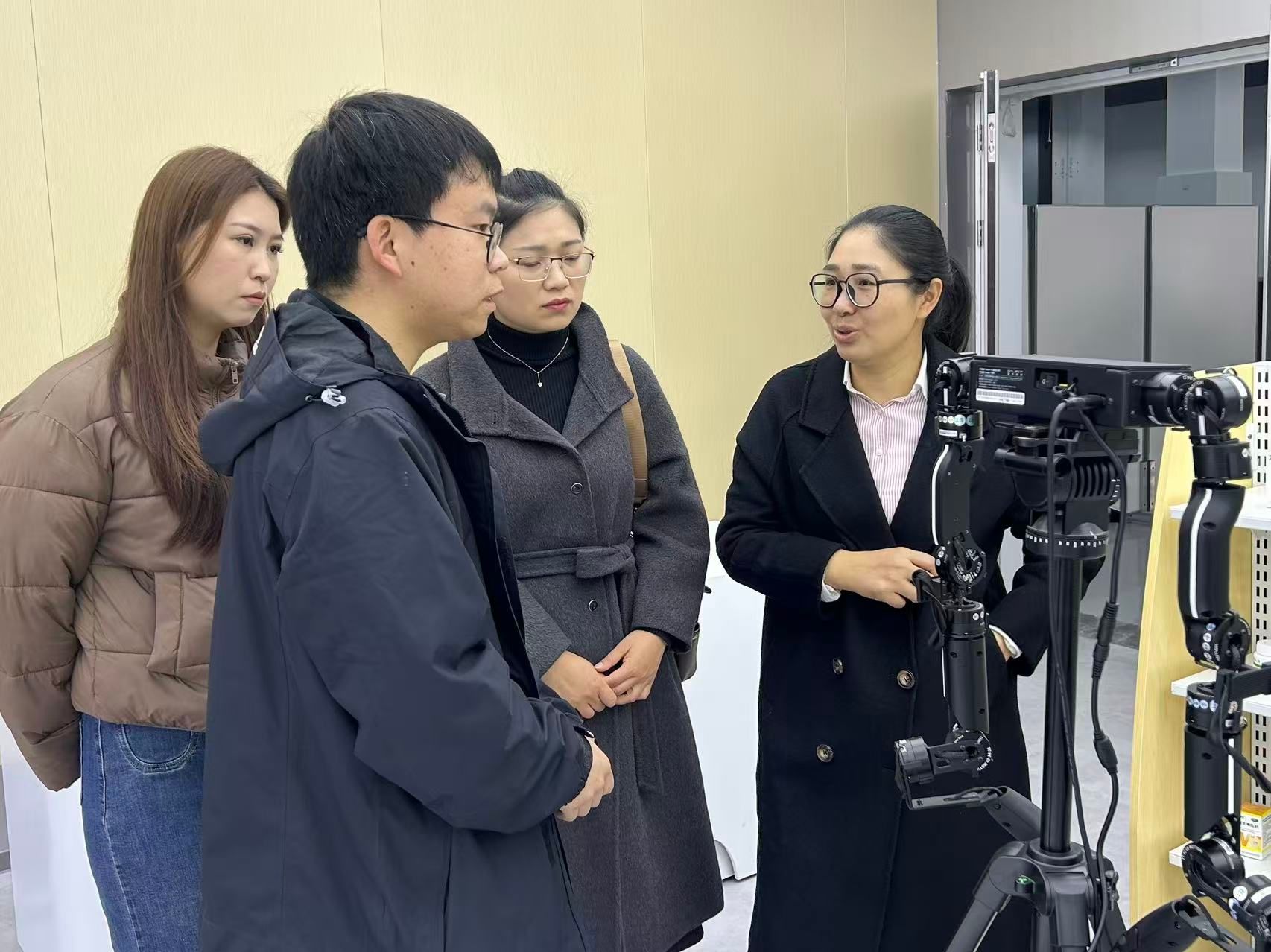 随后,调研团队深入数据采集中心内部,重点考察了数据采集、数据标注、模型训练等与具身机器人发展密切相关的核心工作岗位。通过与岗位负责人面对面交流,详细了解了各岗位的工作流程、核心职责、能力要求及招聘标准,重点掌握了岗位对智能机器人、具身机器人相关专业技能、实践经验、职业素养的具体需求,为学院优化两大专业课程设置、强化实践教学环节提供了精准的产业参考。