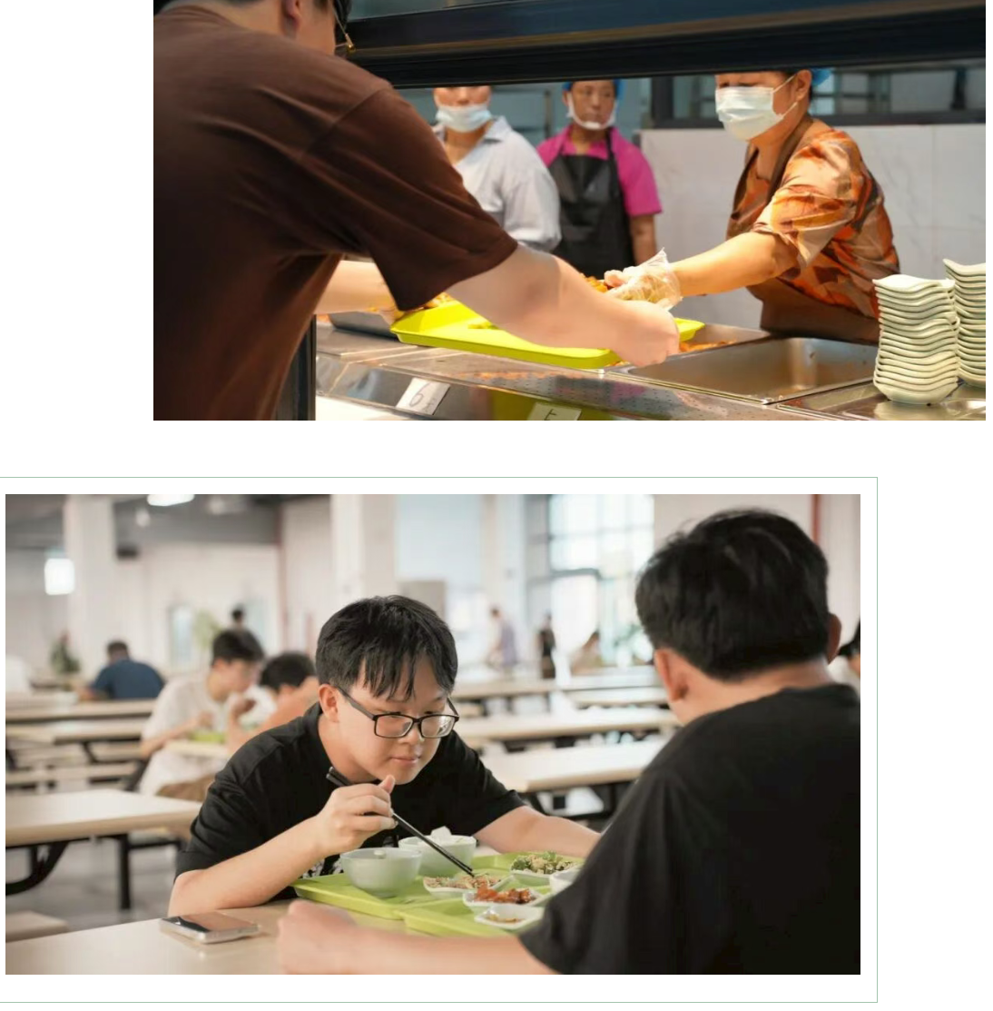 食堂里同样热闹非凡。窗口前,各类菜品陈列整齐,既有家常菜式,也有特色风味。同学们有序排队点餐,或与室友围坐一桌用餐,轻声交谈间,熟悉的饭菜香气与校园烟火气交融。