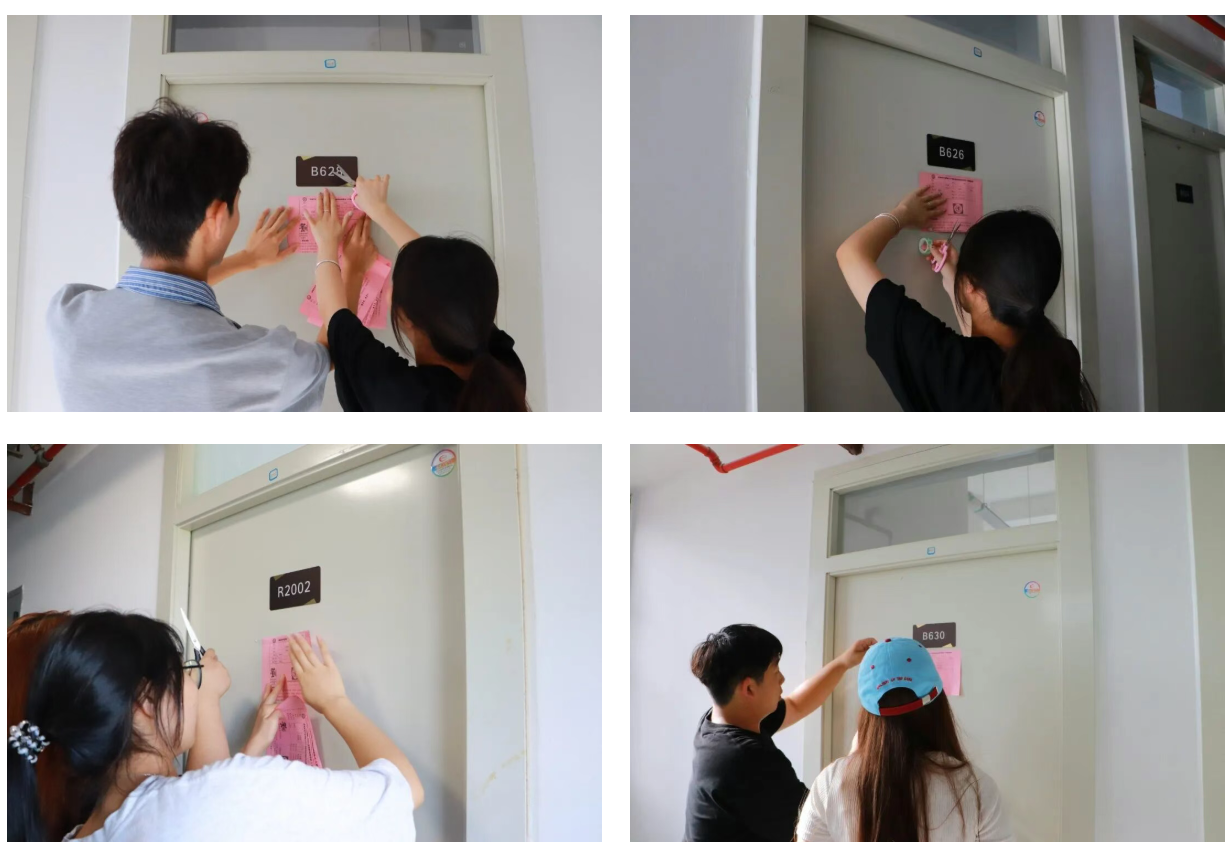 为让新生入住更安心,辅导员老师们与新生班导深入每一间新生宿舍,进行细致入微的检查。重点检查床铺稳固性、桌椅完好度,逐一对宿舍水电线路、插座开关、门窗锁具进行测试,确保无漏电、漏风、松动等安全隐患,对发现的小问题现场记录并联系维修,全力保障住宿安全;同步在每间宿舍门口精准粘贴“宿舍成员名单门贴”,清晰标注床位对应姓名,方便新生快速找到自己的宿舍与床位。确保宿舍是安全、整洁、舒适的。这里不仅是休息的场所,更将是“未来”学子未来三年的家。
