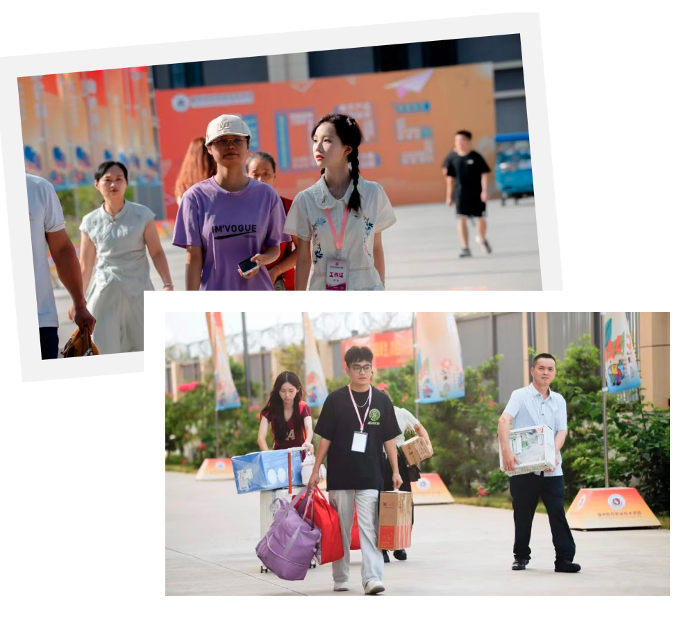 迎新站点上,志愿者们的目光始终朝着萌新到来的方向。当看到熟悉的行李箱轮廓,他们立刻快步上前,自然地接过萌新手中沉甸甸的行李,轻声道一句“欢迎来到学校”、“我来帮你”,他们熟练地引路、耐心解答疑问,忙碌的身影却始终井然有序,萌新们心里的距离感也悄悄消融。这些志愿者们化身 “引路明灯”,用行动默默搭建起萌新与学院之间的第一座桥梁。或许此刻的萌新还叫不出他们的名字,但这份初见时的温暖,已然在心底扎根,将成为他们大学旅程中最珍贵的开篇记忆。
