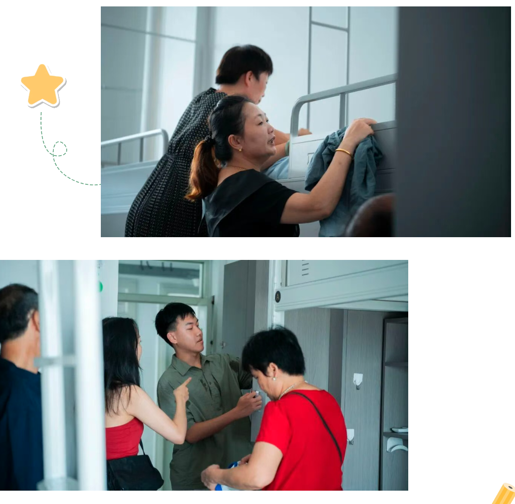 推开宿舍门,阳光透过窗户洒在萌新带来的行李上,室内的热意里,却藏着惊喜的热闹。家人围着被褥帮着出主意,“这样铺更平整,睡觉也舒服”;学姐手把手教调试空调,连温度怎么调最适宜都细细演示;甚至看到行李箱里的小玩偶,也会凑过来笑着聊 “摆在床头当装饰,每天醒来都能看见,多开心”。原本陌生的宿舍,好像慢慢有了熟悉的 “家” 的模样。这方小小的空间,不是冰冷的落脚点,而是第一个 “校园港湾”,只为让你们初来乍到,就能找到归属感。