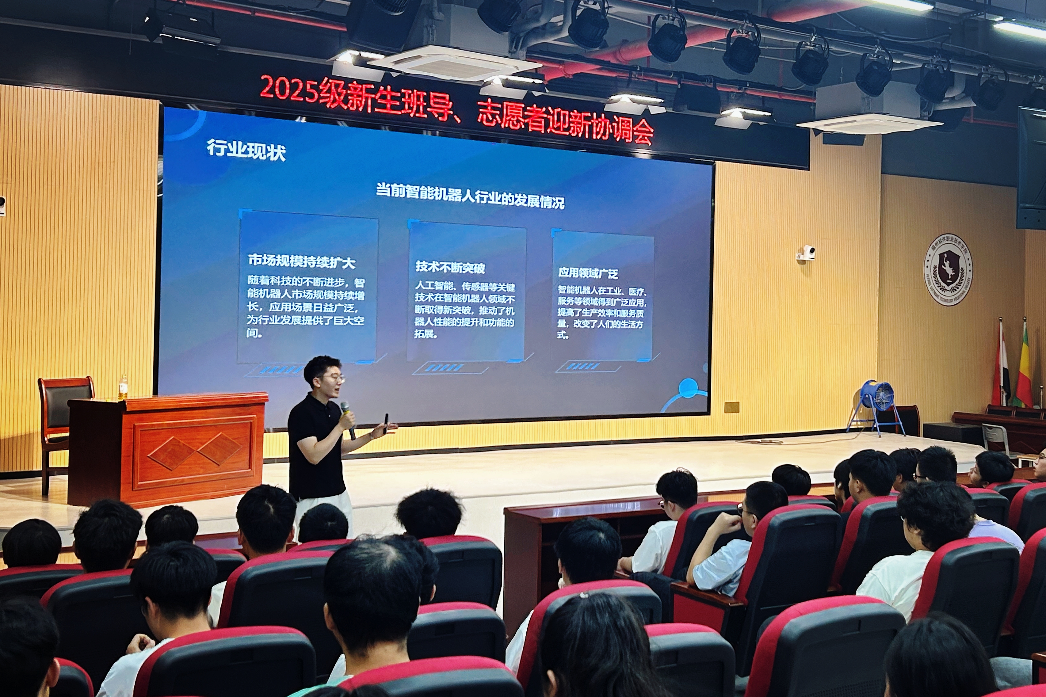 2025年 9月10日,未来技术产业学院成功举办2025级新生专业介绍会,围绕智能机器人技术、工业机器人技术、工业互联网应用、智能光电技术应用、无人机应用技术及电子产品检测技术六大专业,为新生带来一场内容详实、导向明确的专业认知活动,助力其科学规划学业与职业发展。
