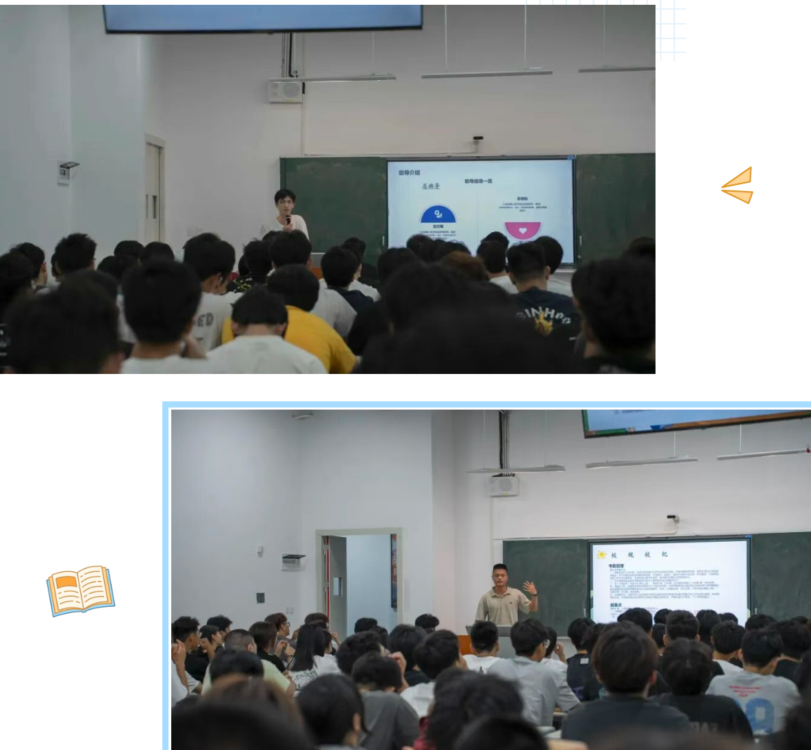 以“树学风、正班风”为目标,各班级召开学风班风建设主题班会。辅导员结合校规校纪,重点强调课堂纪律、考勤管理、学术诚信等要求,明确禁止迟到早退、考试作弊、传播网络谣言等违规行为;引导新生制定个性化学期学习计划,平衡专业学习与社团活动;同时组织新生共同讨论“班级公约”,从学习互助、生活关怀、集体活动等方面凝聚共识,为营造“勤学、善思、笃行”的班级氛围奠定基础。
