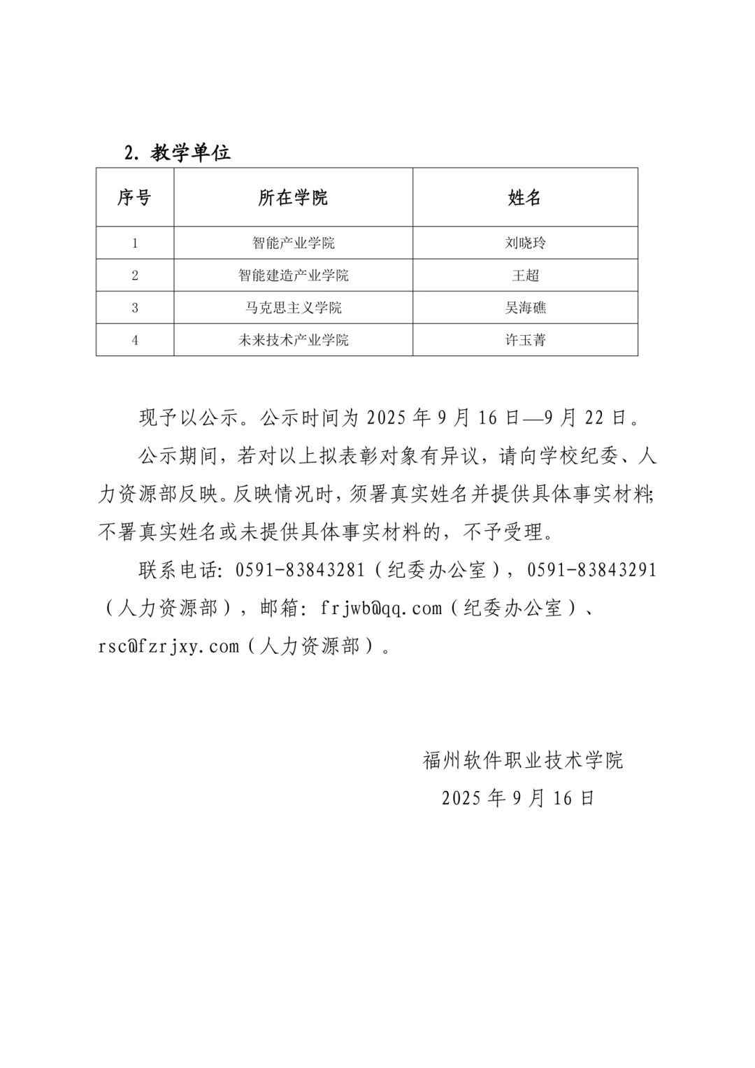 在第 41 个教师节到来之际,为深入贯彻“以教育家精神铸魂强师,谱写教育强国建设华章”的节日主题,福州软件职业技术学院开展2025年优秀教师和优秀教育工作者评选表彰工作。经学校严格评选与公示,我院叶君阁老师荣获“优秀教师”称号,许玉菁老师荣获“优秀教育工作者”称号!两位老师以坚守与担当诠释教育初心,用实绩与奉献书写育人篇章,是全体教职工学习的典范。
